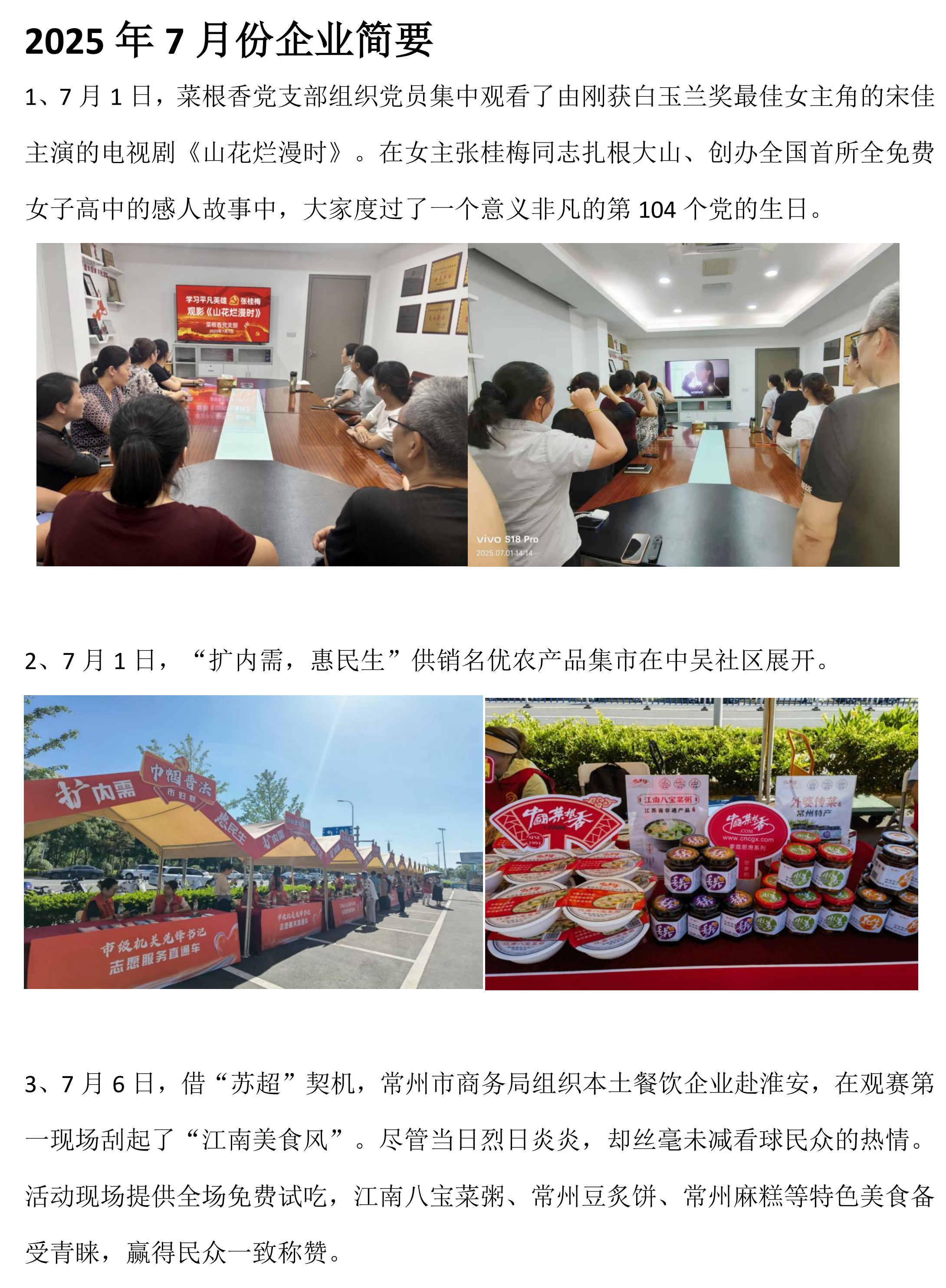 2025年6-7月份企业工作简要